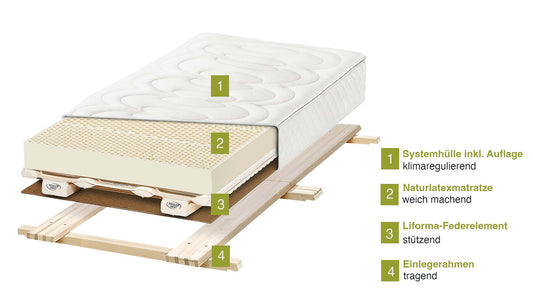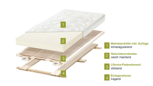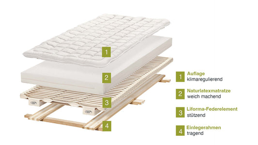 Die Betten von Hüsler Nest werden mit speziellen Federn und Liegezonen hergestellt, um eine optimale Unterstützung zu bieten. Sie haben eine spezielle Schaumstoff-Komfortzone, die den Rücken unterstützt und die Körperform anpasst. Zusätzlich verfügen die Betten über ein mehrschichtiges Federkernsystem, das optimale Druckentlastung bietet.